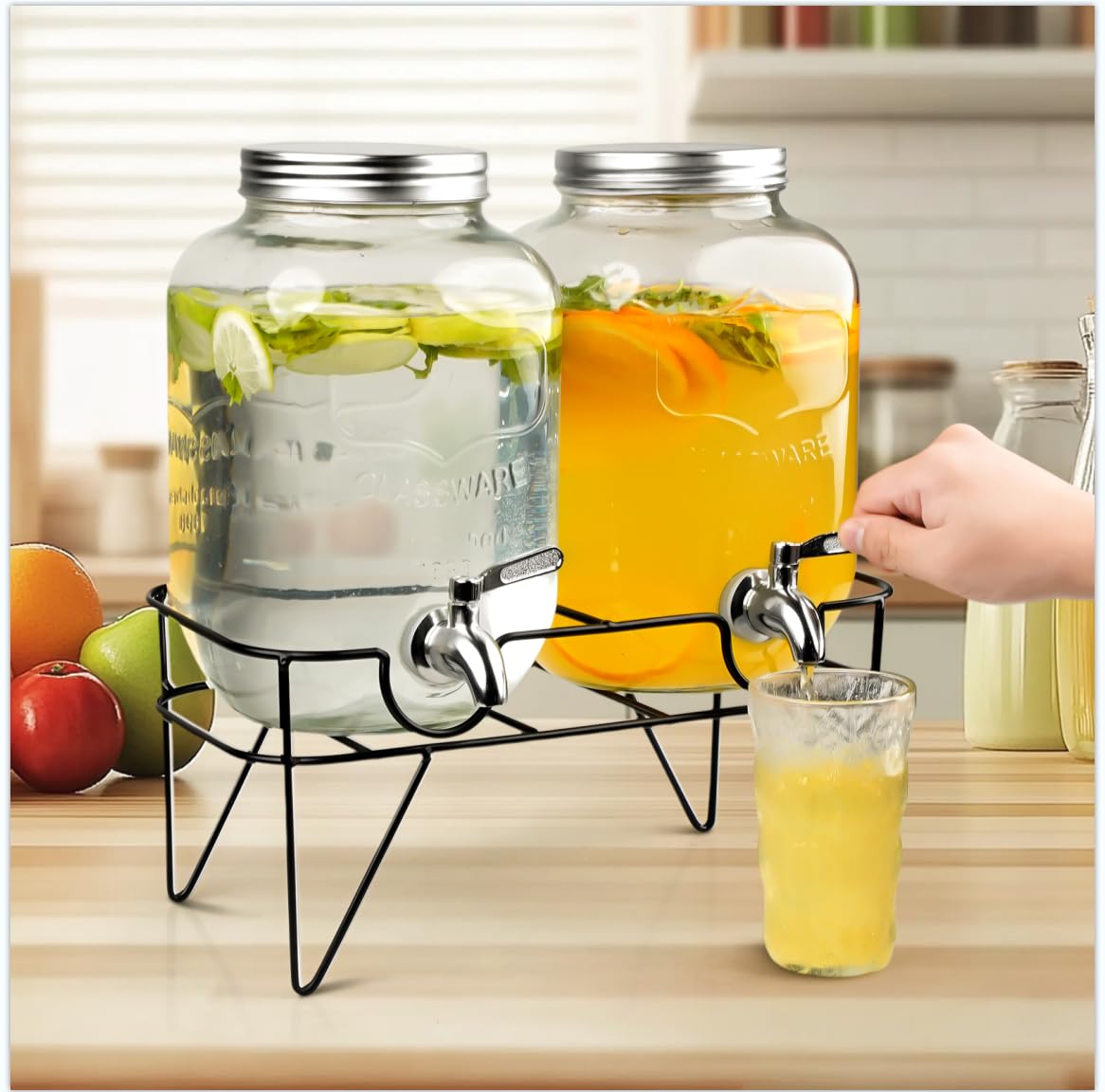 “4L DOUBLE BEVERAGE DISPENSER WITH METAL STAND-2”