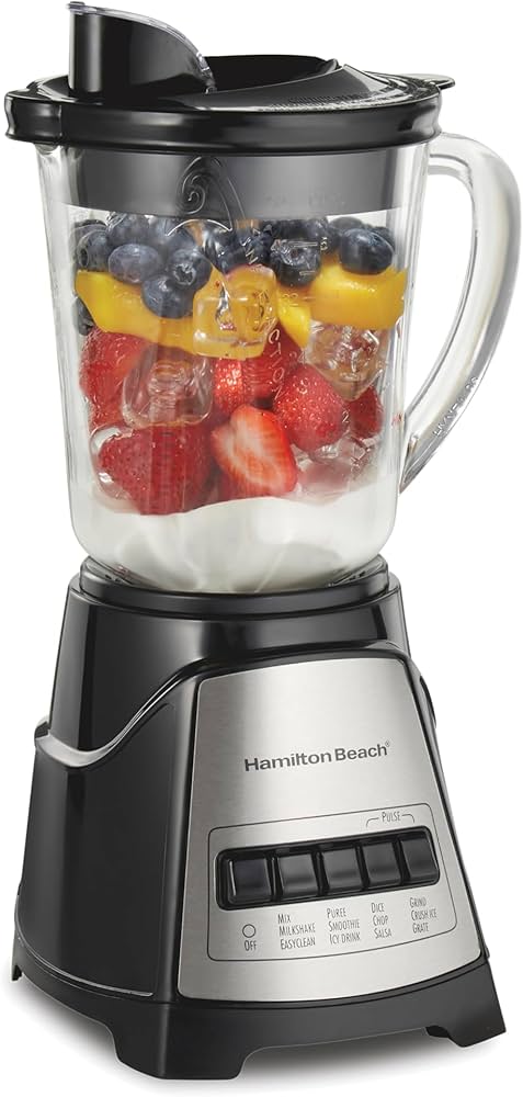 HAMILTON BEACH 58148BLENDER GLASS JAR STAINLESS STEEL W 3 CUP FOOD CHOPPER