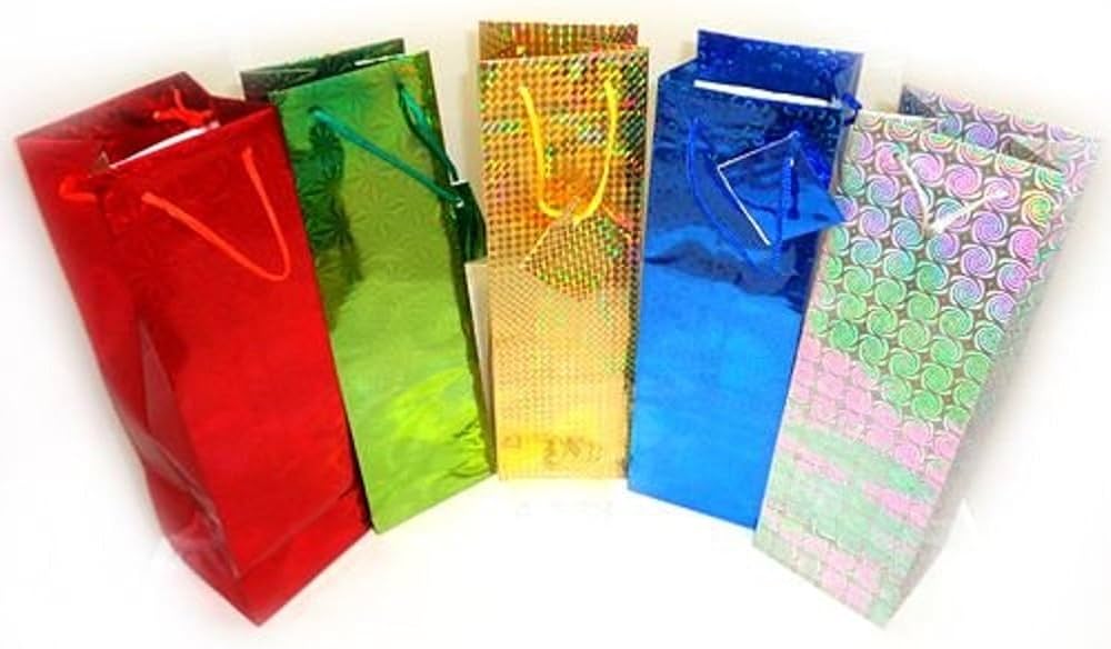 PARTY SOLUTIONS GIFT BAG 4 X 3.5 X 13 HOLOGRAPHIC WINE BOTTLE ASSORTED COLORS